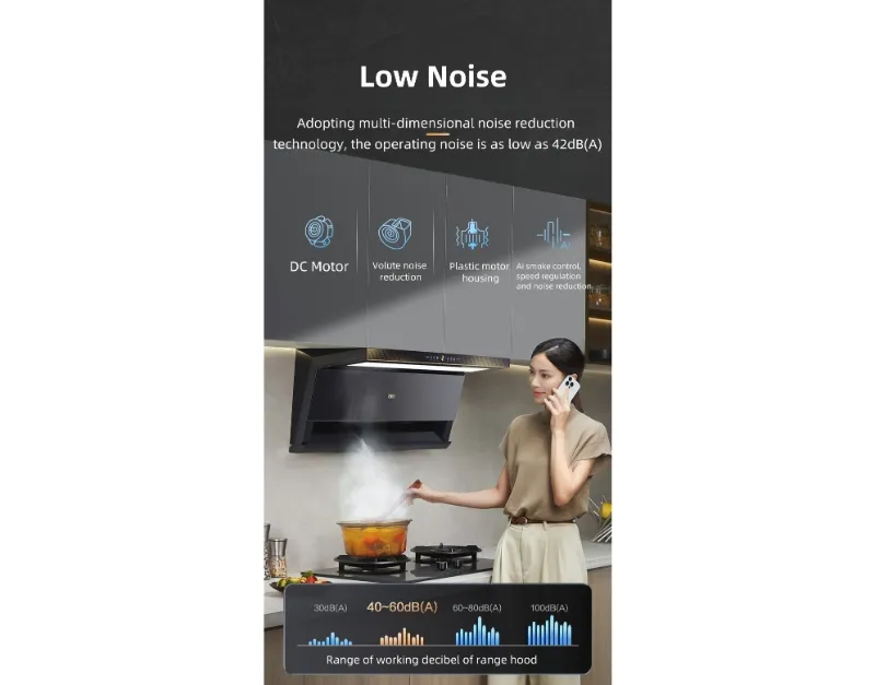 Мощный двигатель постоянного тока с медным сердечником и регулируемой частотой вращения обеспечивает высокую производительность. Больше не нужно беспокоиться о выделении паров при приготовлении пищи. Это открывает новую эру бесшумного и чистого приготовления пищи.