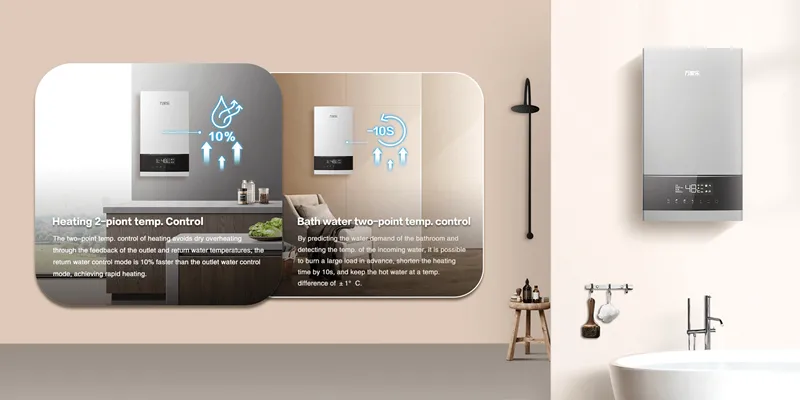 и температуру горячей воды на выходе. можно поддерживать постоянную температуру, обеспечивая быстрый нагрев.
