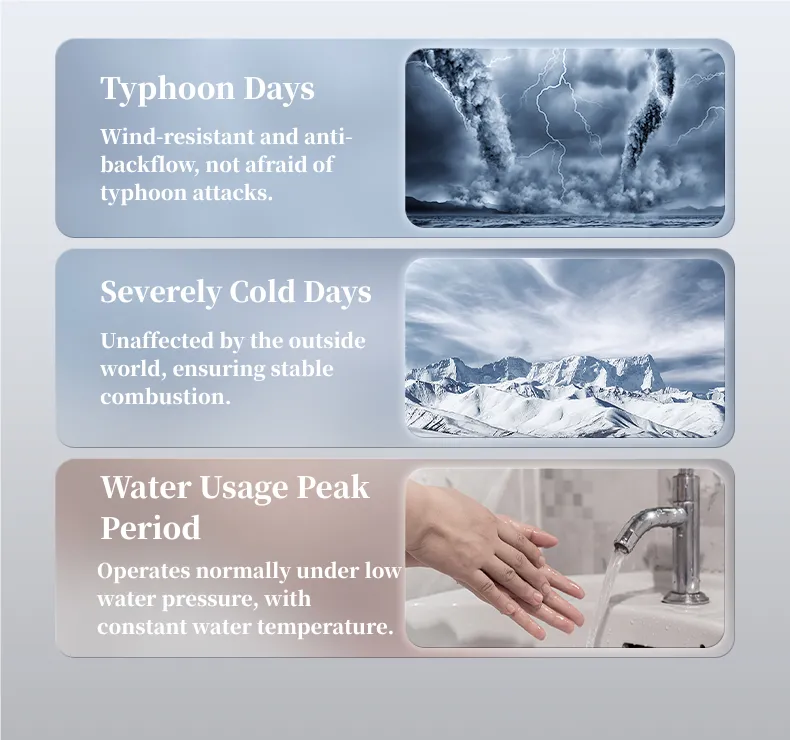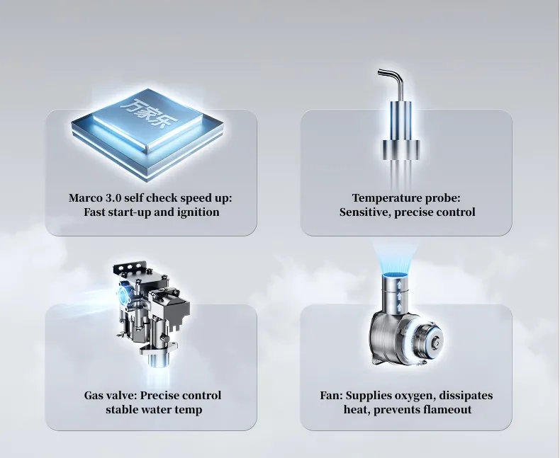 Наши газовые водонагреватели оснащены множеством функций безопасности. Большинство моделей имеют систему максимальной защиты “7 + 2”, которая включает в себя такие меры, как защита от перегрева, защита от сухого горения и защита от возгорания. Кроме того, такие функции, как системы предупреждения об ошибках и устройства сброса давления воды, еще больше повышают безопасность. Также рекомендуется регулярное техническое обслуживание и осмотр в соответствии с руководством пользователя.