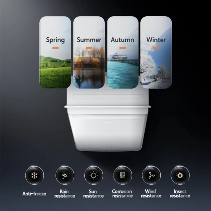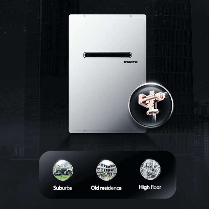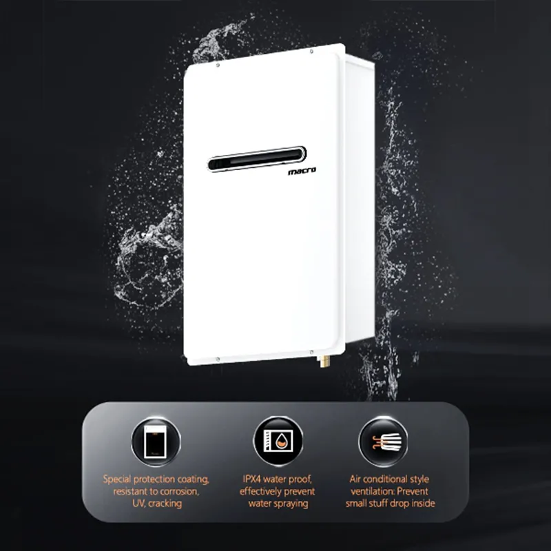 Внешний газовый водонагреватель серии E5 с водонепроницаемостью IPX4 и вентилятором с инверторным двигателем, который хорошо адаптируется к внешней среде, использует интеллектуальную цифровую систему управления с передовой инверторной технологией, реализует интеллектуальную самоадаптацию для стабилизации температуры и обеспечивает наилучшее качество горячей воды.
