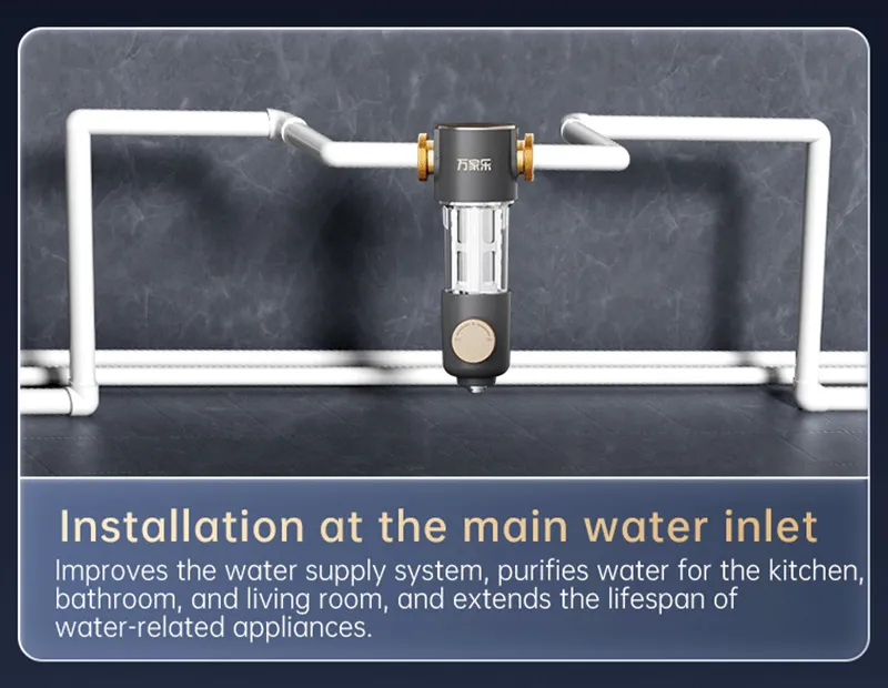 Может устанавливаться на магистральном водопроводе для фильтрации воды в помещении или независимо на передней панели водопотребляющих устройств для целенаправленной очистки.