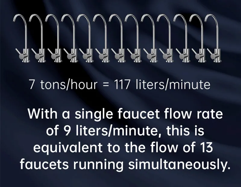 При расходе одного крана 9 литров в минуту это эквивалентно расходу 13 смесителей, работающих одновременно