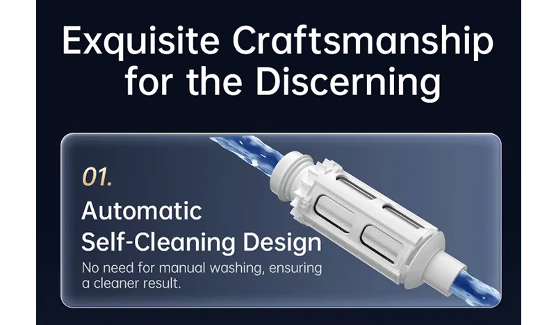 Интеллектуальное кнопочное управление со светодиодным дисплеем обеспечивает мониторинг и эксплуатацию в режиме реального времени. Инновационная система автоматической очистки с 4 режимами (включая временную промывку и ручной режим) не требует технического обслуживания: