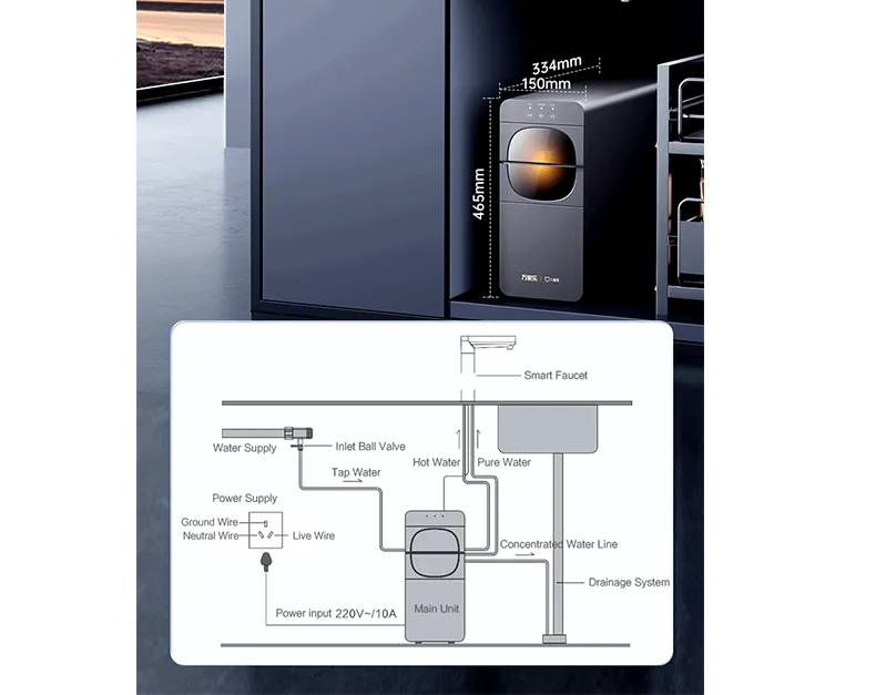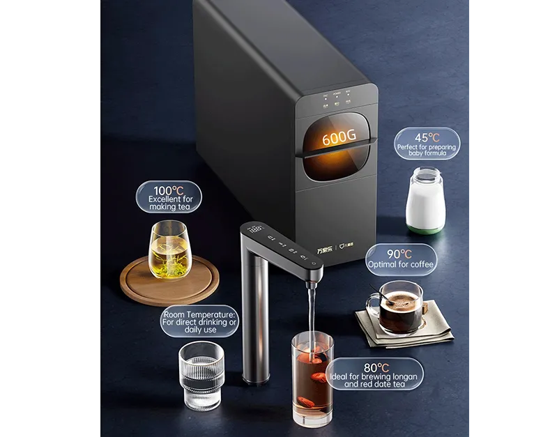 Благодаря пяти регулируемым температурным режимам эта система обеспечивает точное и эффективное дозирование горячей воды для различных сценариев. Функции включают отображение температуры в режиме реального времени, напоминания о замене фильтра и блокировку от детей для дополнительного удобства и безопасности.