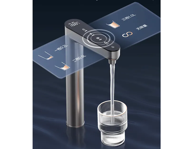 Оснащенный интеллектуальным краном, он подает как чистую, так и кипяченую воду различной температуры: комнатной, 45°C, 80°C, 90°C и 100°C. При номинальной мощности 2200 Вт он обеспечивает эффективную работу при сохранении расхода воды на уровне 1,57 л/мин. Система работает в диапазоне давления воды на входе от 0,1 до 0,4 МПа и обеспечивает гибкие параметры подачи воды: 0,2 л, 0,5 л, 1,0 л или непрерывный поток.