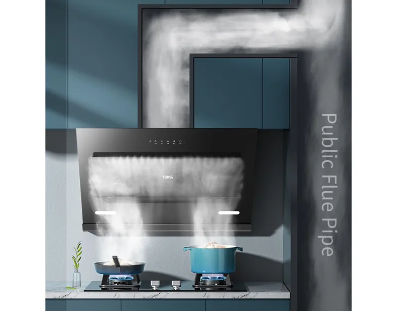 Большая мощность двигателя, закрытого пластиковой крышкой, обеспечивает плавный выпуск воздуха, обеспечивая чистоту воздуха на кухне.