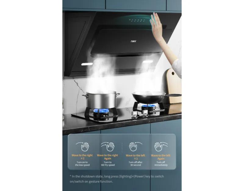 Оснащенный интеллектуальным датчиком движения рук, он управляет вытяжкой одним простым движением, обеспечивая чистоту и комфорт при приготовлении.