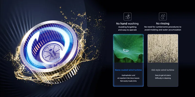 Благодаря центробежной силе, создаваемой сверхвысокой скоростью вращения, она может очистить ветроколесо от жира,
