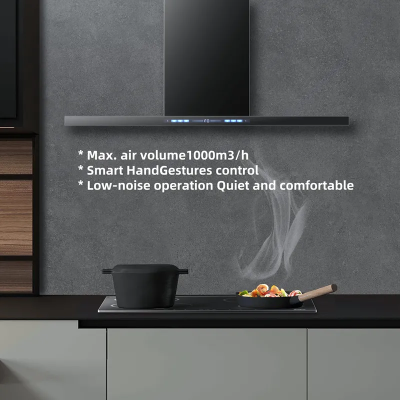 Эта высокопроизводительная вытяжка сочетает в себе сенсорное управление и распознавание жестов, что обеспечивает интуитивно понятное управление. Усовершенствованная технология двигателя постоянного тока обеспечивает мощную вентиляцию с максимальным расходом воздуха 1000 м3/ч при уровне шума всего 67 дБ, что обеспечивает тихую обстановку на кухне.