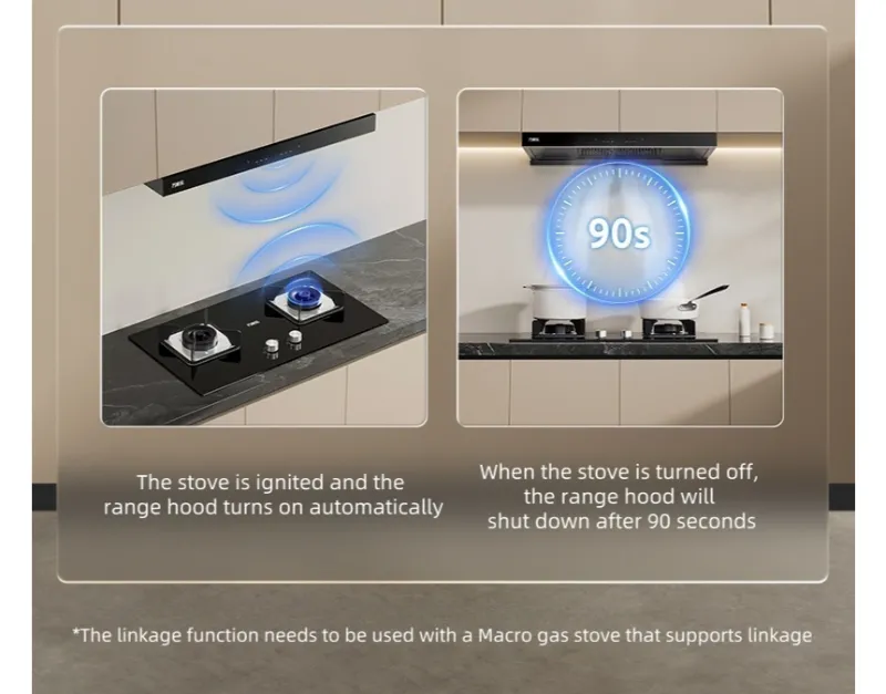 Интеллектуальная функция подключения вытяжки и плиты, автоматический запуск и пауза.