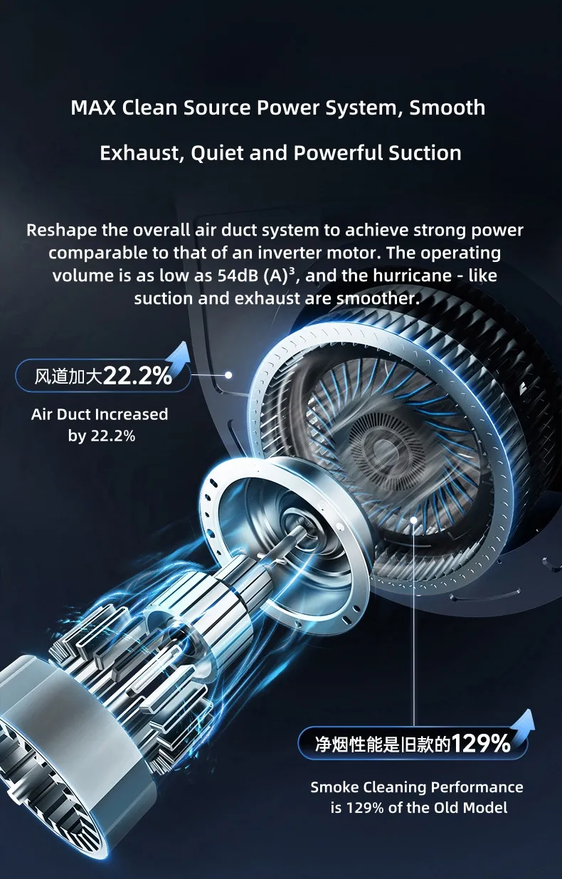 Глубокая полость, широкое всасывание - сильная и стабильная вытяжка дыма